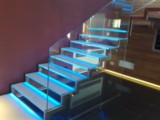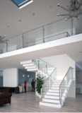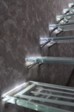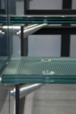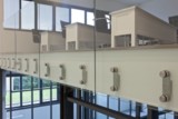 Les garde-corps / balustrade : sur un poteau en acier inox, on insert des fixations à points ou des pinces pour tenir le verre, ce procédé très esthétique est régulièrement utilisé par exemple pour les escaliers. Il va sans dire qu’il est nécessaire que le verre trempé ait l’épaisseur adaptée à cette utilisation. Il existe aussi des fixations ponctuelles (sans poteau) qui s’ancrent dans la dalle de béton et maintienne le verre.