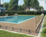 Chez Logli Massimo il existe aussi pour entourer les piscines de manière à se fondre dans le paysage des pinces à verre qui se fixent en parties basses directement sur la dalle et permettent ainsi une presque totale transparence.